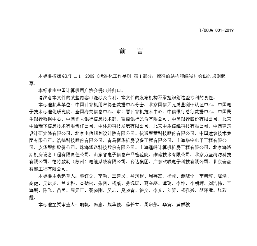 数据中心基础设施等级评价 T/CCUA 001-2019发布